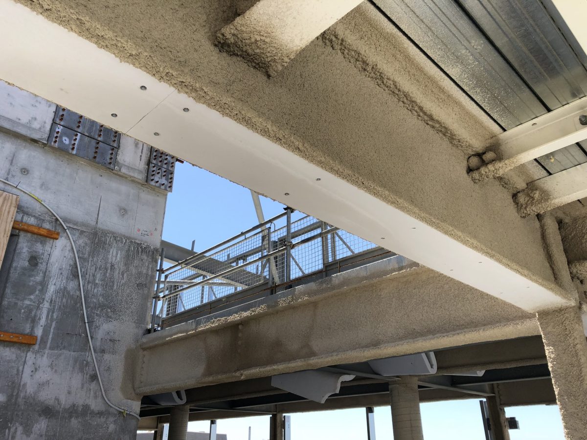 Vermiculite spray is generally more cost-effective than intumescent coating and is often favoured for budget considerations. However for aesthetic requirements, it is common for both intumescent paint and cementitious vermiculite fireproofing to be provided together in the same project.